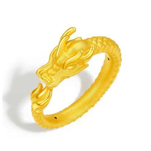 This intricately designed ring features a dragon motif, symbolizing power and prosperity, crafted from 24K solid gold for a timeless appeal.